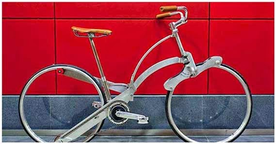 واليوم سوف نتحدث عن الدراجه المحموله , منذ الوهله الاولي قد تلاحظ أن هذه الدراجه عاديه للغايه والشئ الوحيد الغريب أنها لا تحتوي علي أسلاك في العجل.