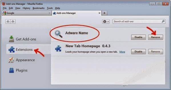 b- قم بحذف الاضافات المريبه أو الافضل ان تقوم بحذف جميع الاضافات