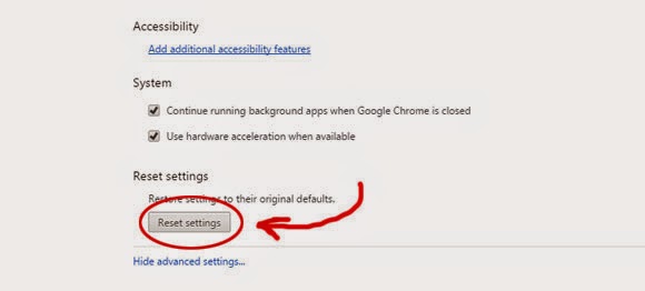 e- ثم قم بالنزول ايضا اسفل الصفحه واضغط علي Reset Settings ثم اختار ok